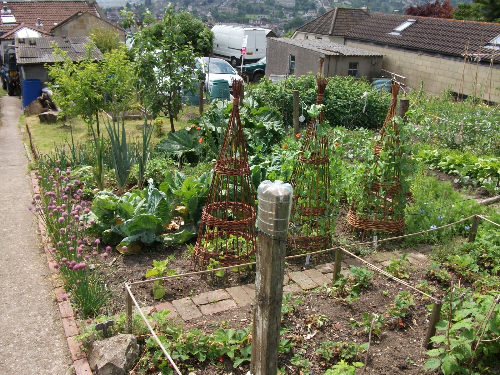The Peas are really taking off after a slow start, they got very munched on by the the damn slugs again so we had to resort to the organic slug pellets (we tried several other method last year and nothing worked so in desperation of having some peas at all this year I've fallen back on the pellets) They are looking very pretty on the willow wigwams.